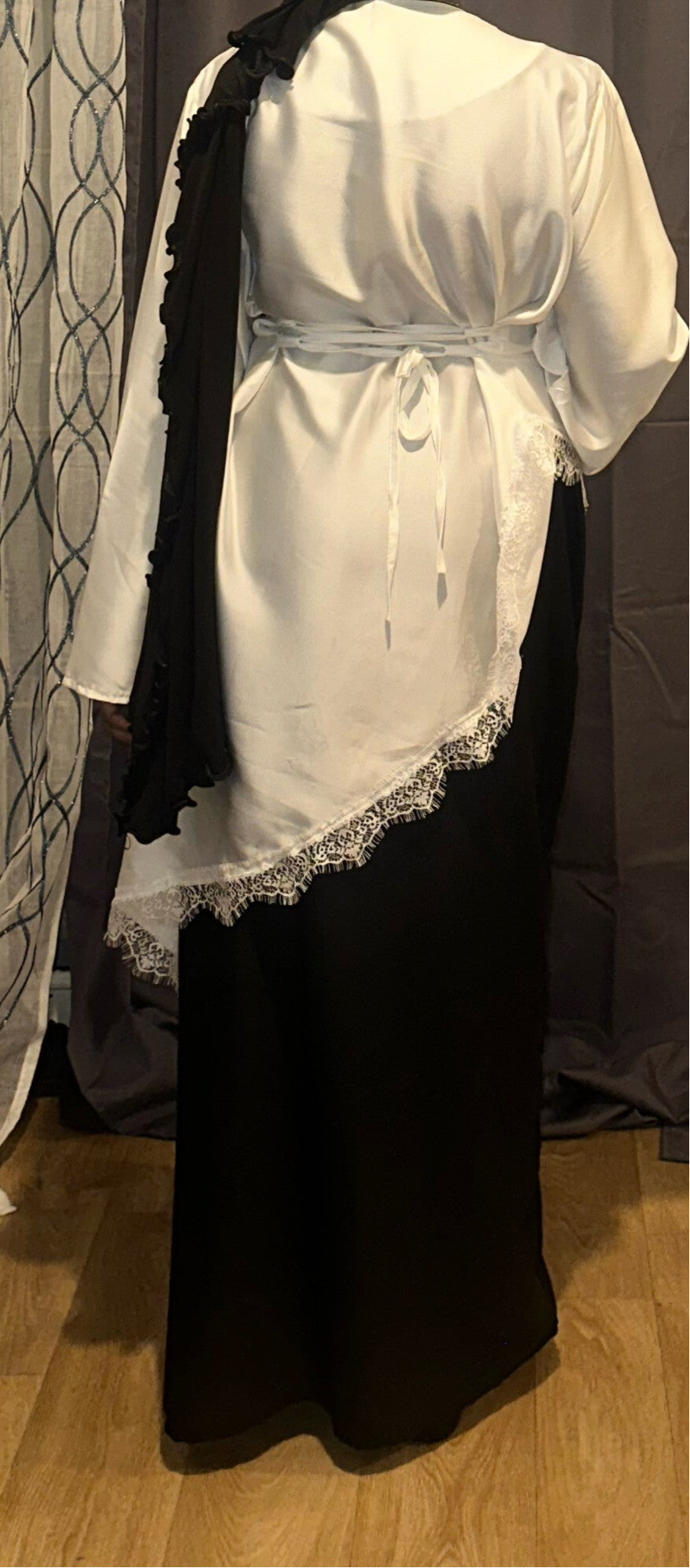 Elle se compose d’une robe sans manches, légère et agréable, accompagnée d’un magnifique haut en dentelle satinée superposé. Le mélange des textures apporte une touche élégante et délicate qui fait toute la différence 🤍
